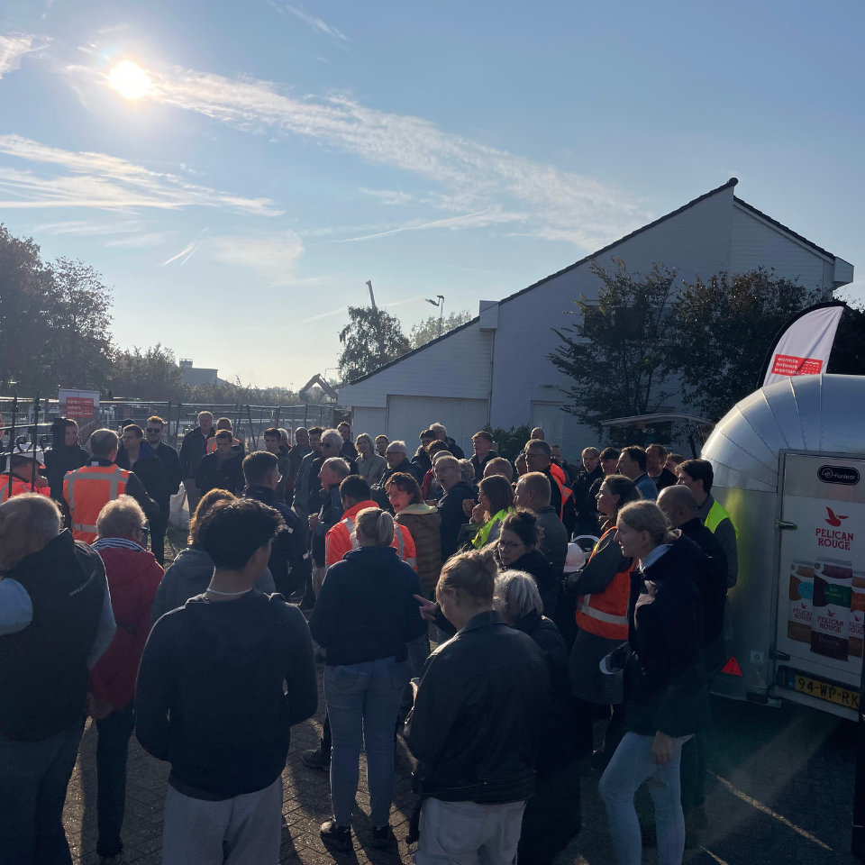 Onder een stralende najaarszon en met verse koffie en Italiaanse canoli was het een gezellige bijeenkomst. Rond 11:30 uur werd het officiële startsein gegeven voor de intrekoperatie.